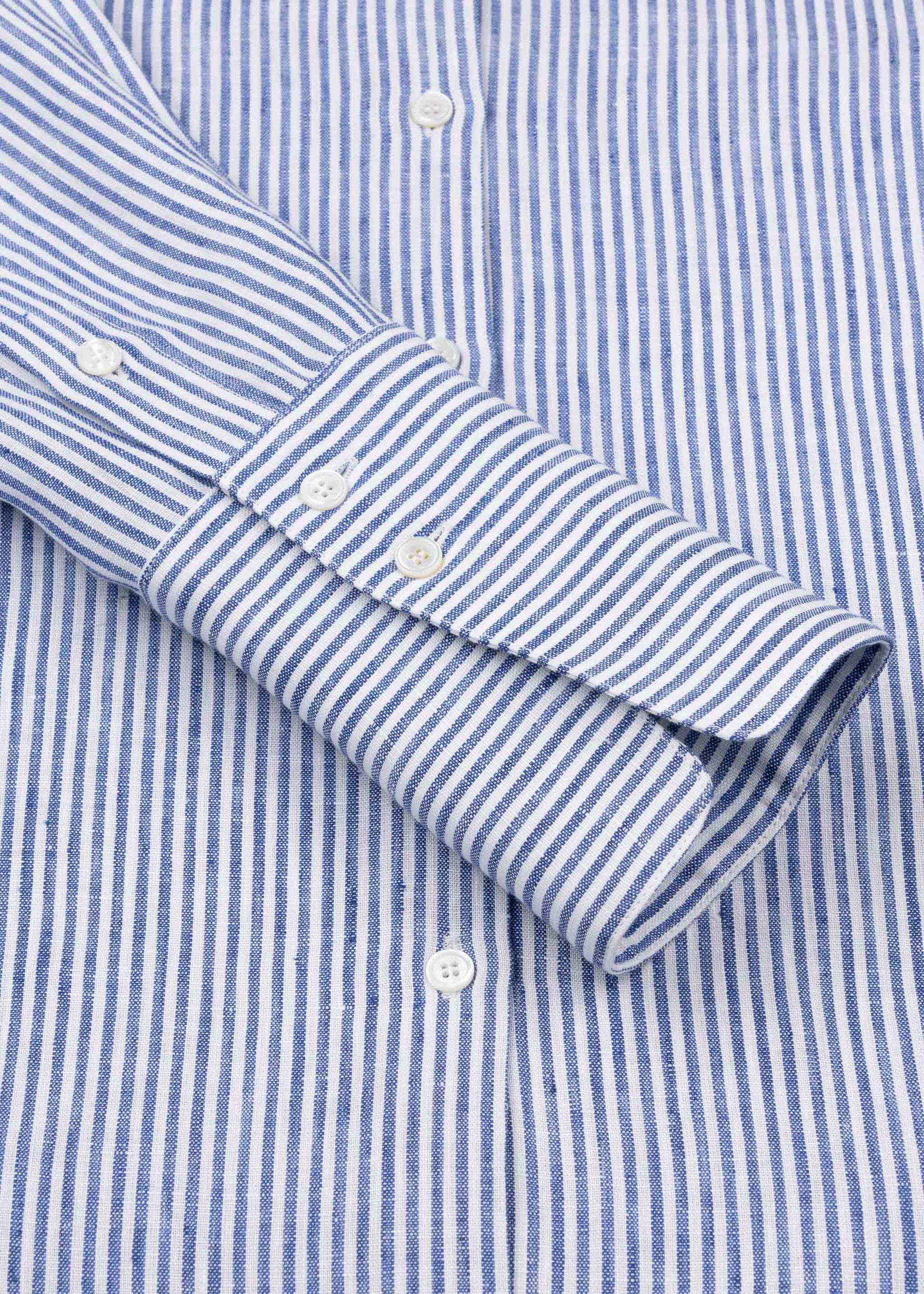 Introducing our 'woman shirt' in an airy, striped pure linen; it is the safest bet if you are looking for a feminine and impeccable shirt. Well proportioned and cut to sit the right amount of slim, it delivers the best figure both opened and closed to the neck. The oversized cuffs are that chic add on that refreshes the style and gives you a swag in your every activity. Our shirt is entirely handmade in the city center of Milan.