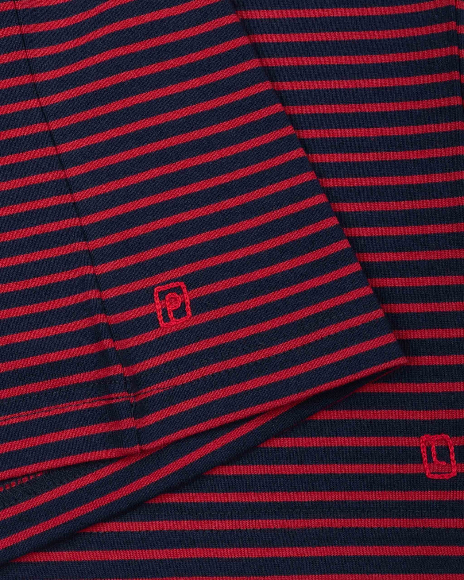 Our striped t-shirt satisfies all your exclamations and emotions. It comes with small hand-embroidery 'P&L' on both sides. The cotton comes from Japan.